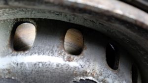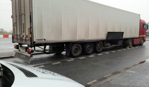 Białoruski serwis w bazie firmy pominął naprawę jednego koła naczepy lub w ogóle go nie naprawiał. Inspektor diagnosta z wielkopolskiej inspekcji znalazł usterki i zatrzymał dowód rejestracyjny naczepy.