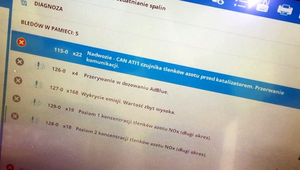 Kierowca wiedział o awarii układu selektywnej redukcji katalitycznej spalin SCR, ponieważ wyświetlały mu się komunikaty komputera pokładowego, a mimo to kontynuował jazdę.