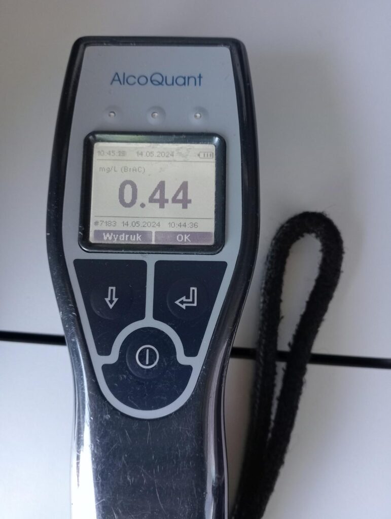 Podczas kontroli dokumentów, jeden z inspektorów poczuł woń alkoholu od kierowcy włoskiej ciężarówki. Na miejsce został wezwany patrol policji z Poznania. Kierowca został przekazany w ręce policjantów. Badanie alkomatem wykazało 0,9 promila alkoholu. Pojazd został odholowany na parking strzeżony, a dalszym losem kierowcy zajęła się Komenda Miejska Policji w Poznaniu.