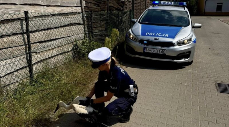 Dziś w Połajewie policjanci zostali wezwani do… bociana.