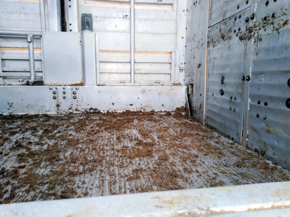 Brudny, niewyczyszczony, z dużą ilością odchodów zwierzęcych pojazd do przewożenia żywych zwierząt skontrolowali wielkopolscy inspektorzy z Leszna.
