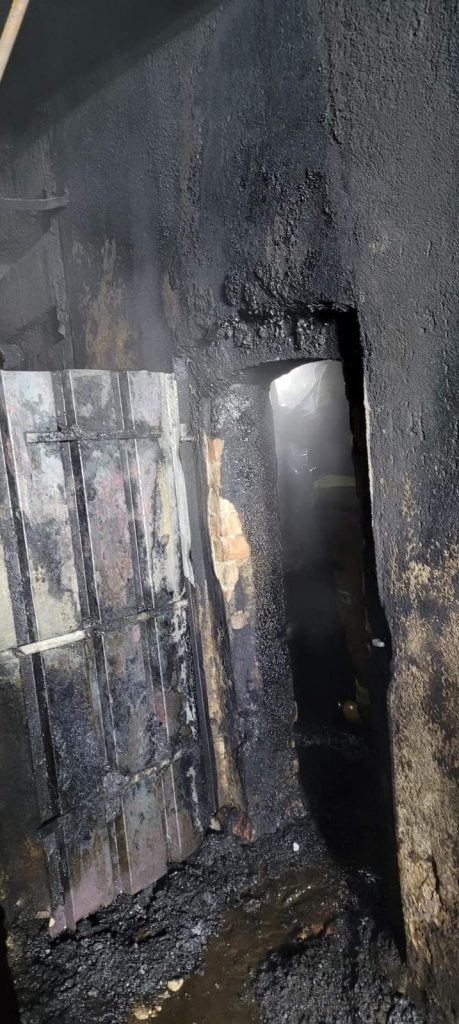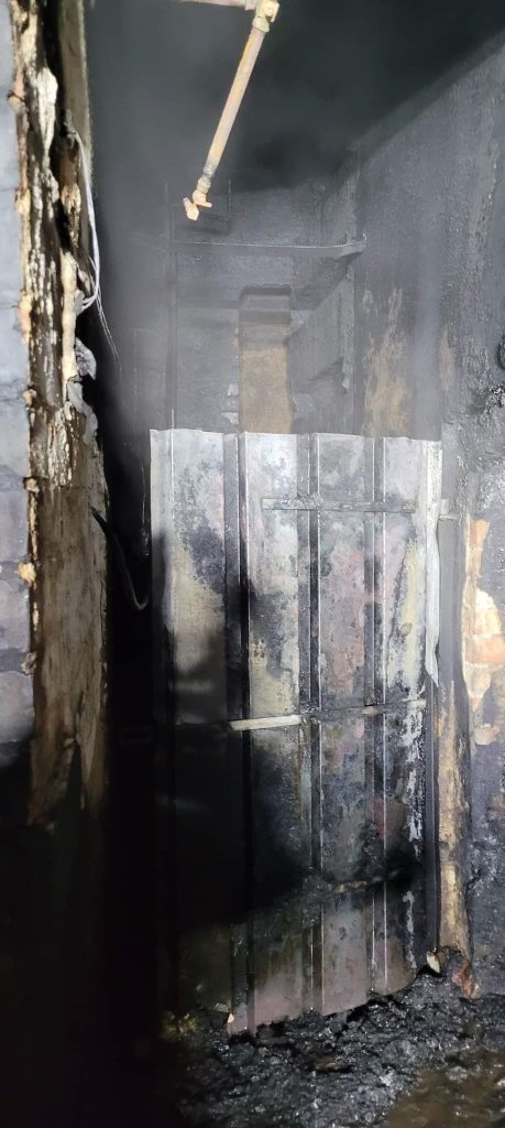 Po dojeździe na miejsce zdarzenia KDR stwierdził, że doszło do pożaru pomieszczenia wędzarni usytuowanej na parterze budynku wielorodzinnego. Po przyjeździe JOP płomienie wydobywały się już na zewnątrz budynku i stwarzały zagrożenie dla mieszkania usytuowanego na 1 piętrze.