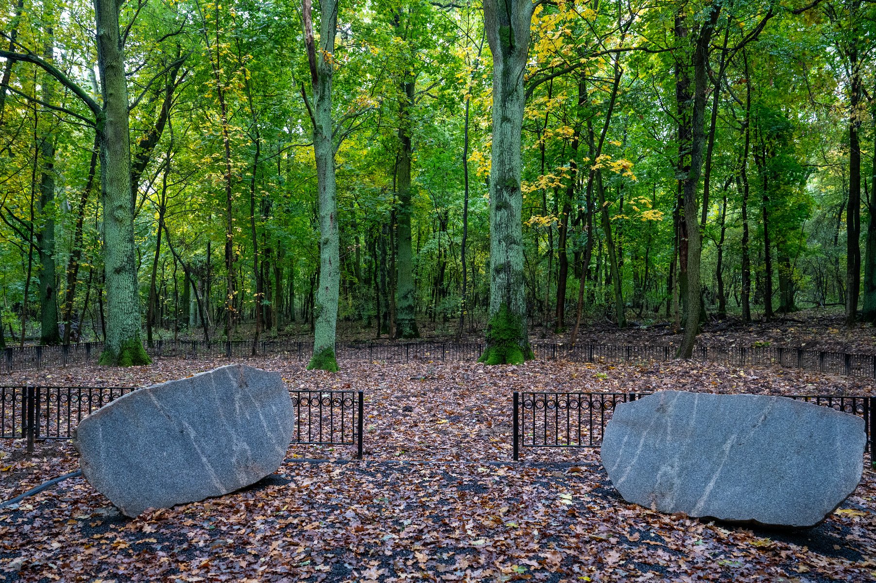 Kwatera wykorzystuje leśny charakter cmentarza, zachowując swój naturalny wygląd (liście, ściółka).