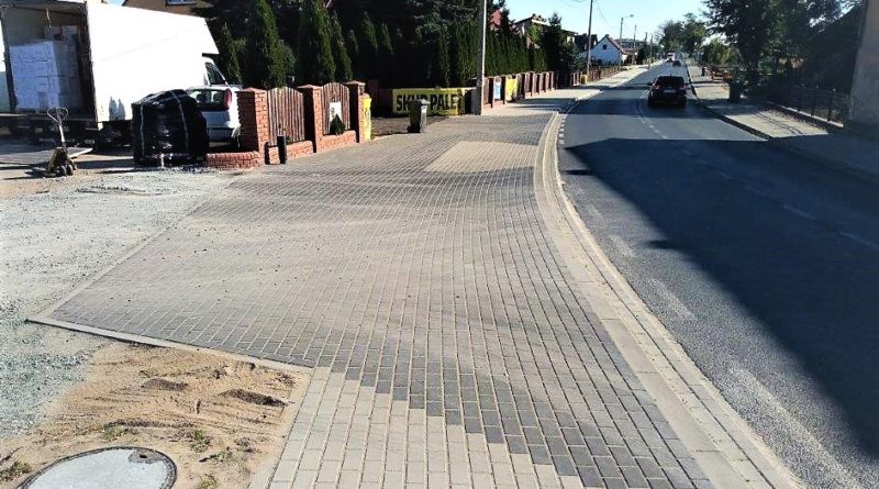 Chodnik z kostki betonowej o szerokości dwóch metrów powstał na odcinku o długości 400 m od skrzyżowania z ul. Majową do skrzyżowania z ul. Świerkową. Zakres robót objął również remont istniejącej zatoki autobusowej.