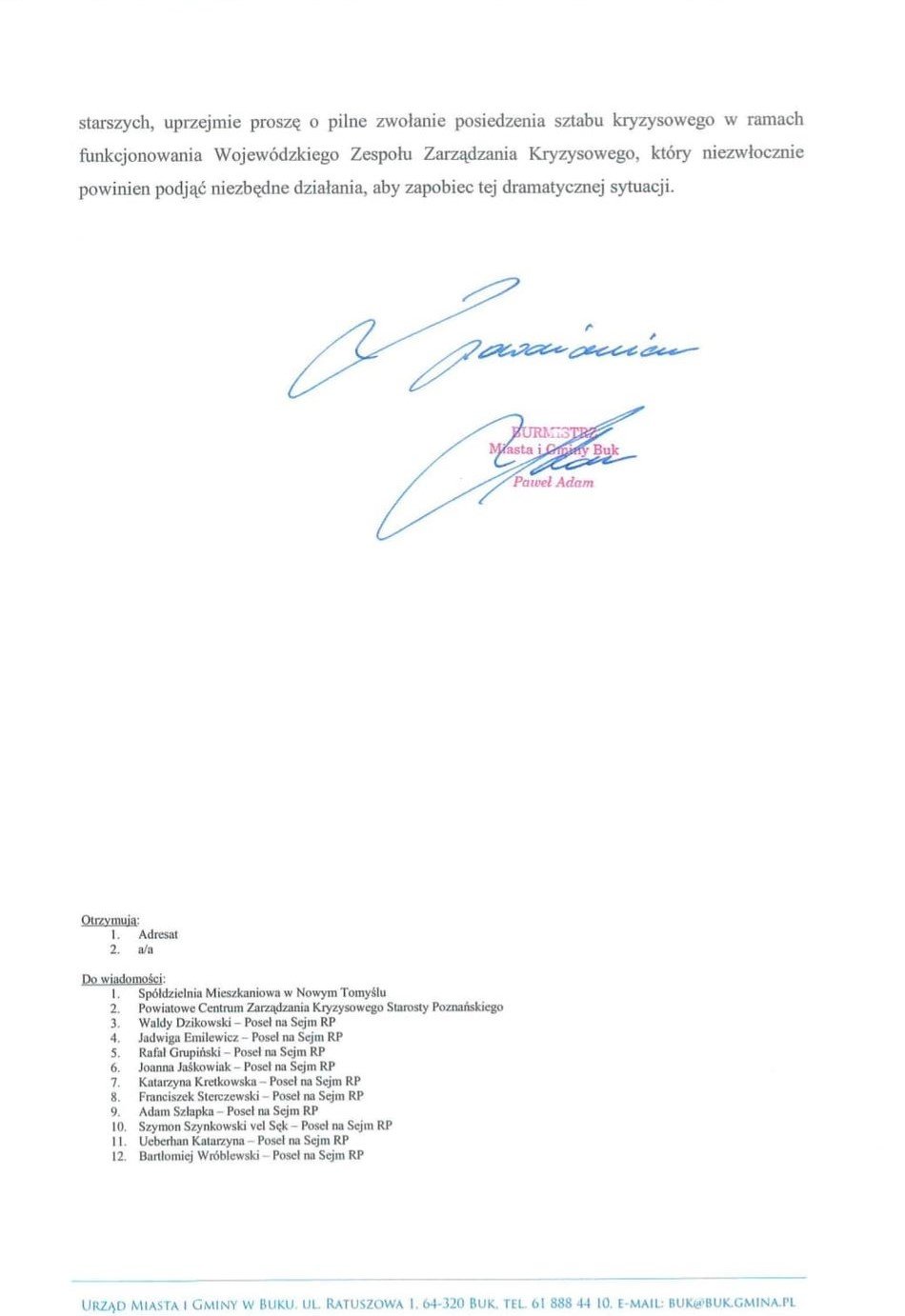 W piśmie w dniu dzisiejszym skierowanym do Wojewody Wielkopolskiego Michała Zielińskiego proponuje zwołania Wojewódzkiego Zespołu Zarządzania Kryzysowego, który niezwłocznie powinien podjąć niezbędne działania, aby zapobiec tej dramatycznej sytuacji. Pismo w dniu dzisiejszym również zostało wysłane do wszystkich parlamentarzystów, także do Powiatowego Centrum Zarządzania Kryzysowego Starosty Powiatowego. W tej sprawie na bieżąco będziemy informować o podjętych działaniach.