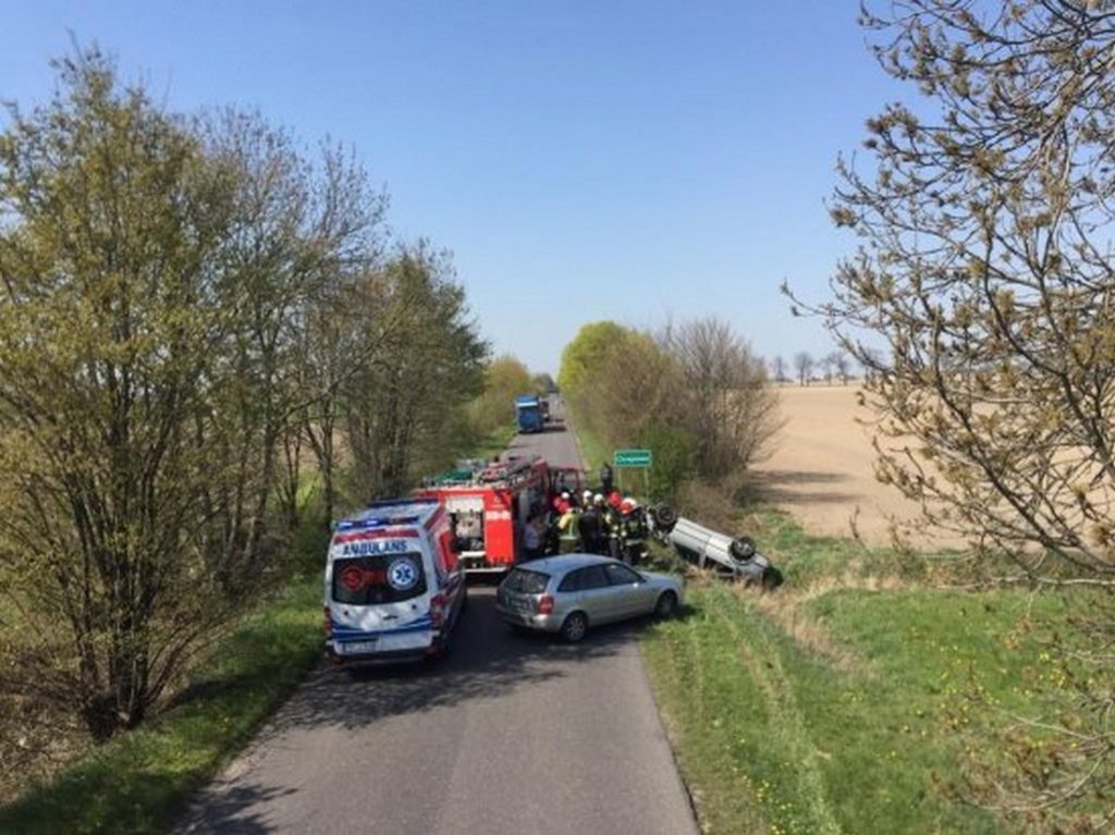 Prowadząca samochód osobowy marki Volkswagen Bora kobieta, straciła panowanie nad pojazdem, zjechała na prawe pobocze drogi i uderzyła przodem w betonową barierę. Pojazd zatrzymał się na dachu w pobliżu rowu z wodą. Do zdarzenia zadysponowani zostali strażacy z JRG Nowy Tomyśl i OSP Kuślin oraz dwa Zespoły Ratownictwa Medycznego. Osoby uczestniczące w zdarzeniu opuściły pojazd przed przybyciem służb ratunkowych. Do szpitala na szczegółowe badania zostali przetransportowani wszyscy uczestnicy zdarzenia, 19-latka w ciąży kierująca samochodem, 22-letni brat oraz dwie kobiety w wieku 29 i 52 lata. Działania straży pożarnej polegały na zabezpieczeniu miejsca zdarzenia, odłączeniu akumulatora w rozbitym pojeździe, udzieleniu uczestnikom wypadku kwalifikowanej pierwszej pomocy oraz na usunięciu pozostałości powypadkowych z drogi. Na czas prowadzonych działań ratowniczych i czynności dochodzeniowych droga była zablokowana przez trzy godziny.