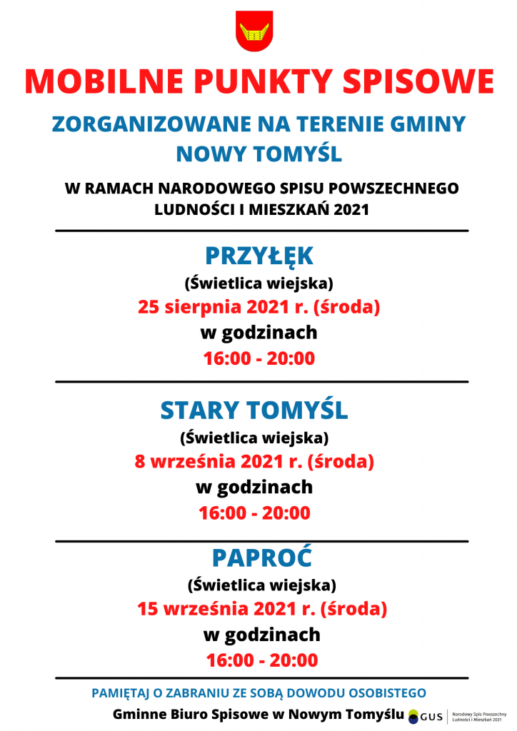 NOWY TOMYŚL: Mobilne Punkty Spisowe