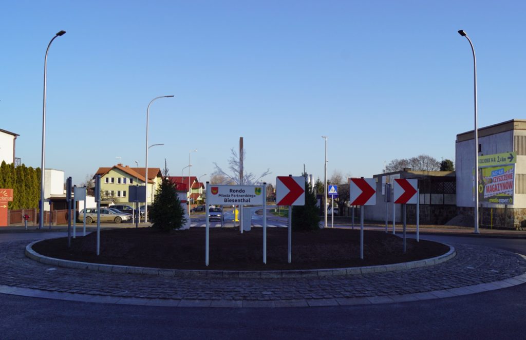 Nowo oddane rondo nosi nazwę: Rondo Miasta Partnerskiego Biesenthal. W dniu 25 listopada br. podczas uroczystej sesji, radni Rady Miejskiej jednogłośnie przyjęli uchwałę nadającą rondu nazwę na cześć miasta partnerskiego Nowego Tomyśla. W ten sposób stanowić ono będzie pamiątkę 20-lecia partnerstwa pomiędzy regionami, która przypada 2019 roku.