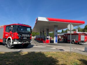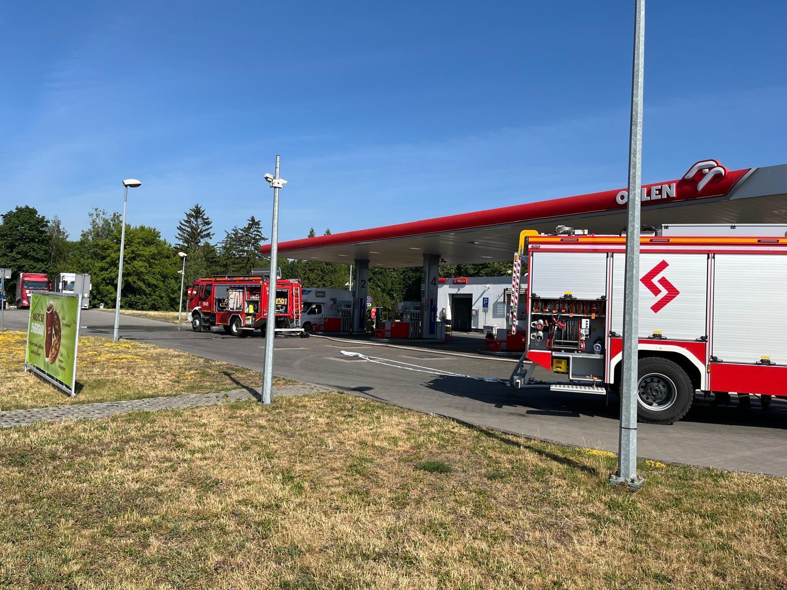 NOWY TOMYŚL: Rozszczelniony zbiornik LPG w samochodzie typu camper na stacji paliw ORLEN