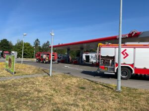 Po przybyciu na miejsce zdarzenia zastano samochód typu camper z nieszczelnym zbiornikiem gazu LPG służącym do zasilania kuchenki gazowej, pojazd znajdował się bezpośrednio przy dystrybutorze na stacji paliw. Przed przybyciem zastępów straży pożarnej została przeprowadzona ewakuacja pracowników oraz klientów stacji.
