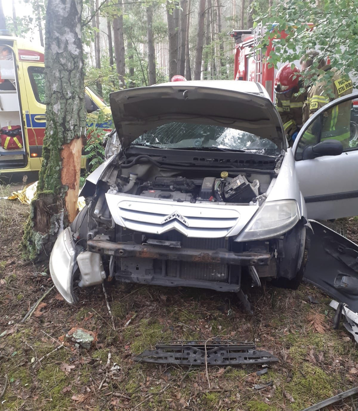 Po przybyciu pierwszych zastępów na miejsce zdarzenia zastano rozbity na drzewie samochód osobowy oraz osobę poszkodowaną poza pojazdem wyciągniętą przez świadków zdarzenia.