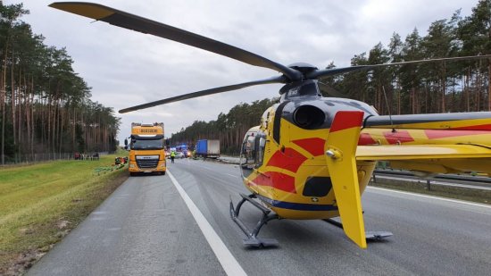 Nowy Tomyśl – wypadek drogowy na 109 km A2. Na miejscu śmigłowiec LPR