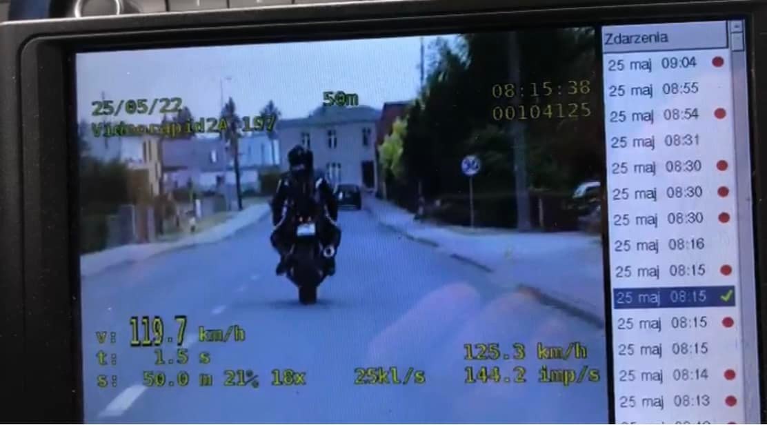 Zamiast określonych przepisami 50 km/h, jechał 119 km/h oraz nie posiadał kategorii do kierowania motocyklem!
