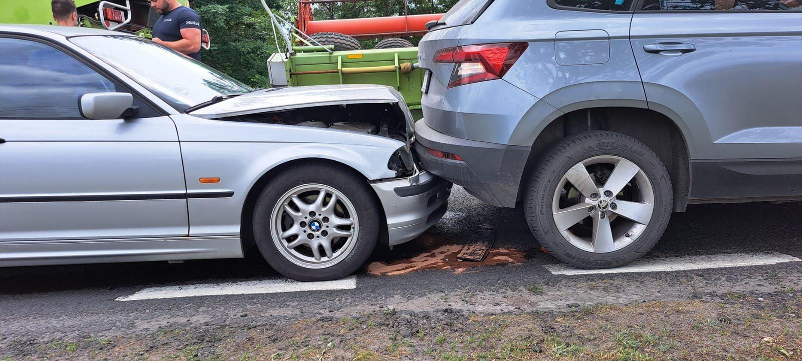 NOWY TOMYŚL: Zderzenie 2 samochodów osobowych i kombajnu