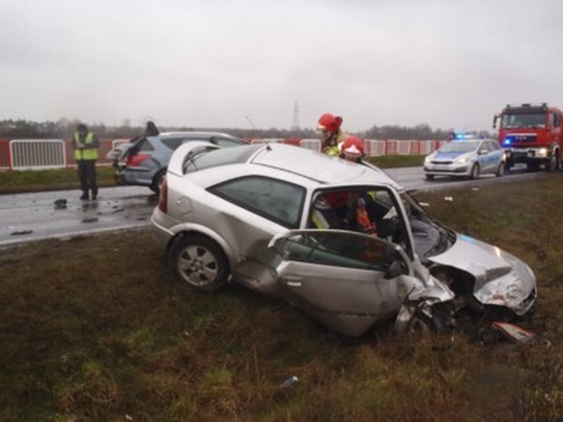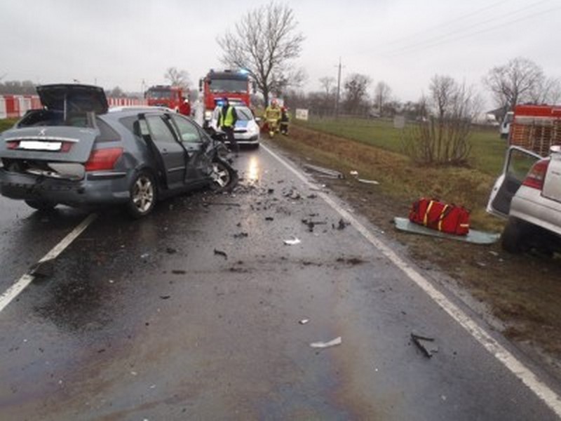 Do pomocy poszkodowanym zadysponował zastępy GBA i GCBA z JRG we Wrześni oraz GBA z OSP w Węgierkach. Po dojeździe na miejsce jednostek ochrony pożarowej rozpoznano, że w zdarzeniu uczestniczyły dwa auta osobowe i jedno ciężarowe. Każdym z aut podróżowali tylko kierowcy. Udzielenia kwalifikowanej pierwszej pomocy wymagali uczestnicy z pojazdów osobowych. Po przyjeździe na miejsce zespołów ratownictwa medycznego zostali oni przetransportowani do szpitala powiatowego we Wrześni. W trakcie prowadzonych działań droga krajowa była zamknięta.