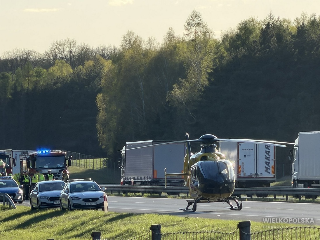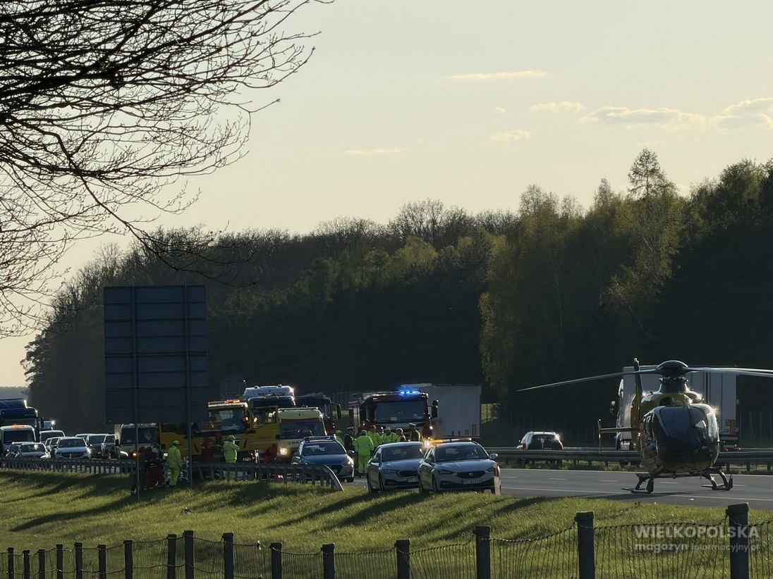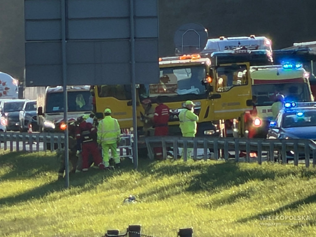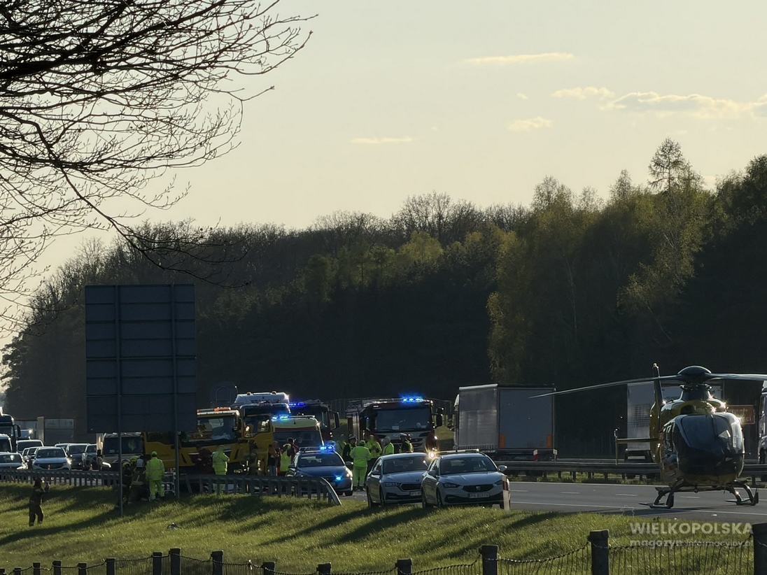 Obecnie jezdnia w kierunku Poznania pozostaje zablokowana. Na miejscu nadal pracują służby ratunkowe, a kierowcy muszą liczyć się z poważnymi utrudnieniami.