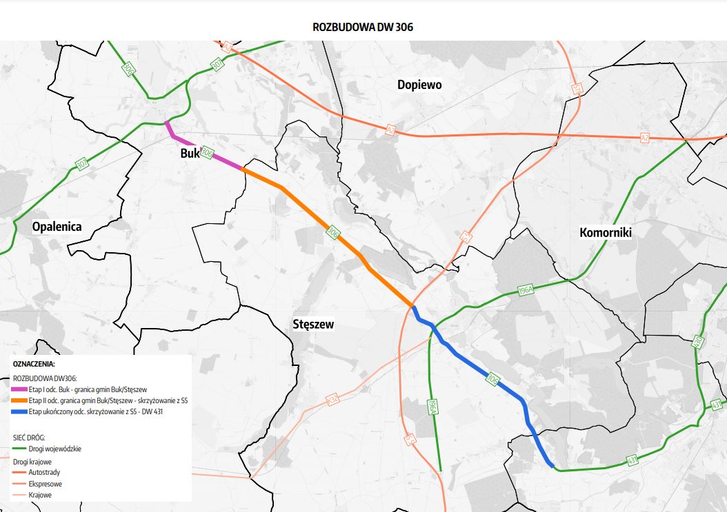 Odcinek o długości 3,7 km w Bukuto jeden z dwóch etapów rozbudowy drogi nr 306 zaplanowanych do realizacji w latach 2021-2023. Równolegle trwa jeszcze postępowanie przetargowe dla odcinka o długości 8,6 km w granicach gminy Stęszew. To kontynuacja inwestycji rozpoczętej w 2017 r.