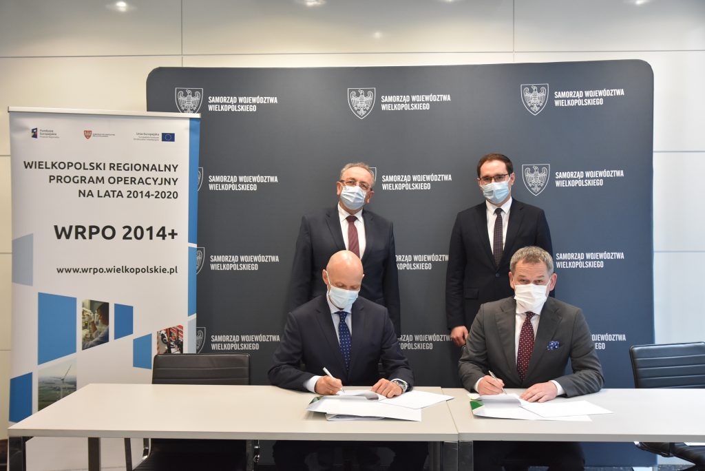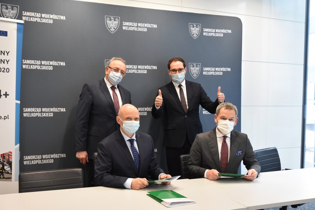 Umowęw obecności Wojciecha Jankowiaka, Wicemarszałka Województwa Wielkopolskiego i Pawła Adama, Burmistrza Miasta i Gminy Buk, podpisali: Paweł Katarzyński, Dyrektor WZDW w Poznaniu i Maciej Hewusz, Dyrektor Regionu COLAS Polska.