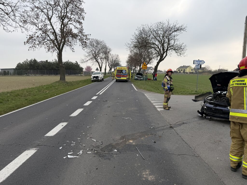 Po dojeździe na miejsce zdarzenia stwierdzono zderzenie dwóch samochodów osobowych. Pojazdami podróżowały osoby, z których jedna odniosła obrażenia i wymagała pomocy medycznej.