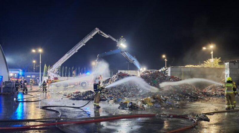 Po przybyciu na miejsce zdarzenia zastano pożar pryzmy odpadów oraz tlącą się rozdrabniarkę, która wstępnie została stłumiona przez automatyczny system gaszenia oraz pracowników zakładu.