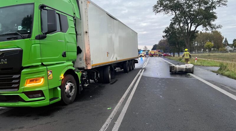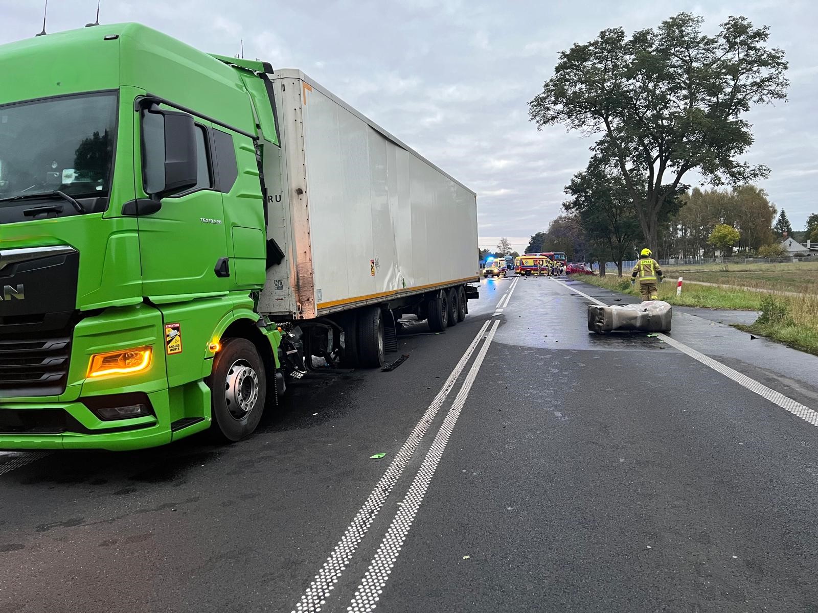 W wyniku zderzenia uszkodzeniu uległ zbiornik oleju napędowego samochodu ciężarowego, co spowodowało wyciek paliwa na całej szerokości jezdni na odcinku około 100 metrów. Droga była całkowicie zablokowana.