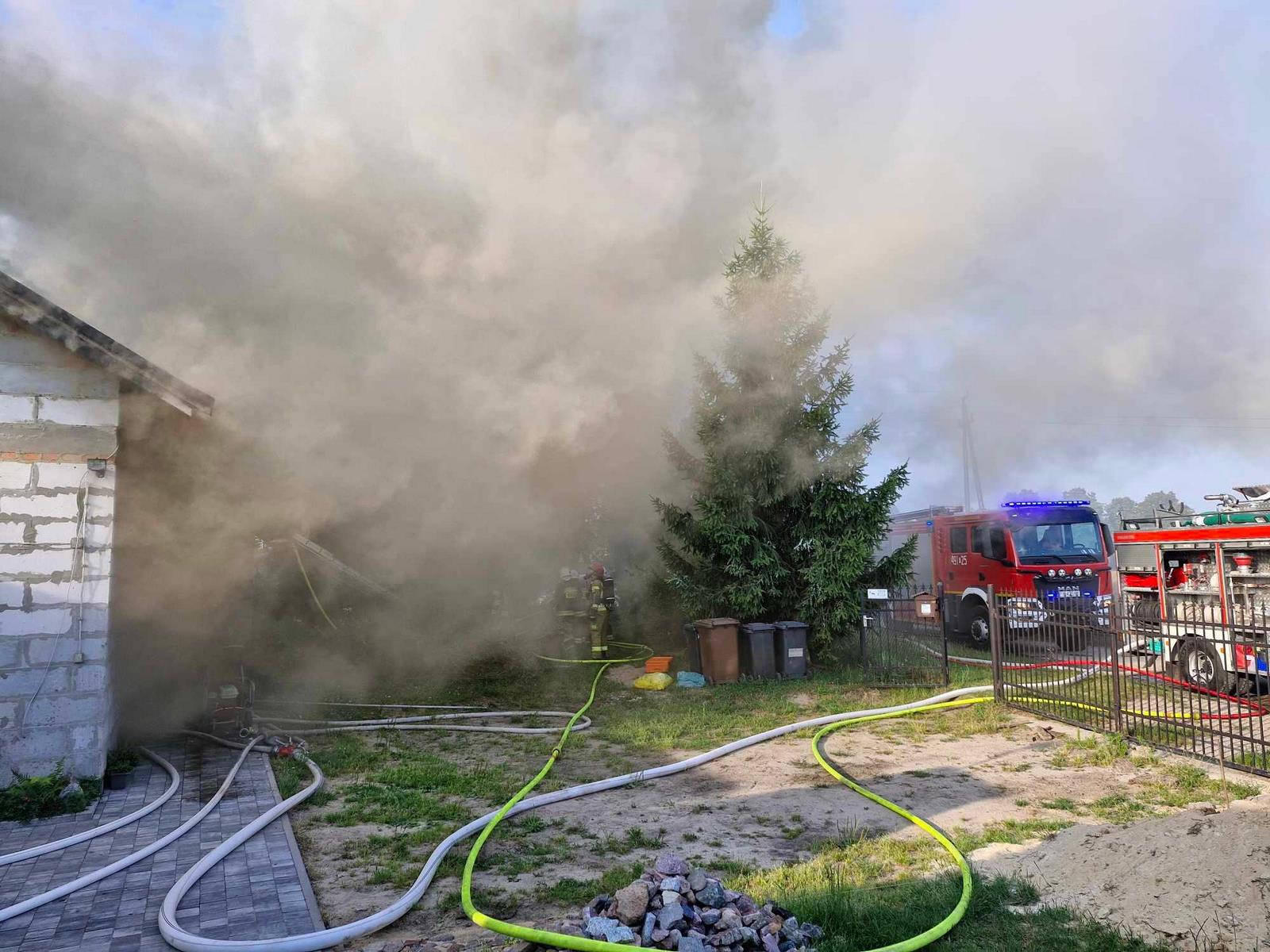 Strażacy po zabezpieczeniu terenu działań uzyskali dostęp do zamkniętego obiektu mieszkalnego za pomocą dostępnego sprzętu i rozpoczęli działania gaśnicze połączone z przeszukaniem pomieszczeń mieszkalnych pod kątem osób poszkodowanych. W momencie sprawdzenia całego obiektu i stłumienia ognia na parterze rozpoczęto podawanie środka gaśniczego w natarciu na palącą się więźbę dachową. Działania prowadzono ze stanowisk gaśniczych na zewnątrz obiektu z wykorzystaniem drabin przystawnych. Po stłumieniu ognia na poddaszu budynku mieszkalnego uzyskano możliwość bezpiecznego sprawienia podnośnika hydraulicznego przy obiekcie na wąskim placu manewrowym i rozpoczęto prace rozbiórkowe niestabilnej drewnianej konstrukcji celem dogaszenia ukrytych zarzewi ognia oraz eliminacji ryzyka upadku luźnych krokwi dachowych. W tym samym czasie ewakuowano pozostałą część wartościowego mienia z części obiektu nieobjętej pożarem do sąsiedniego garażu otwartego przez właściciela, który dotarł na miejsce w trakcie prowadzonych działań. Mężczyzna w końcowej fazie akcji zgłosił złe samopoczucie wymagające szerszej diagnostyki, dlatego na miejsce wezwano zespół ratownictwa medycznego. Oczekując na przyjazd karetki pogotowia, poszkodowanemu udzielono kwalifikowanej pierwszej pomocy adekwatnej do zgłoszonych dolegliwości. Właściciel został zabezpieczony przez zespół ratownictwa medycznego, który po wykonaniu niezbędnych czynności pozostawił uczestnika zdarzenia na miejscu interwencji. Po zakończeniu działań gaśniczych, wykonaniu prac rozbiórkowych, a także usunięciu nadpalonych elementów na zewnątrz obiektu dokonano weryfikacji zagrożenia pożarowego za pomocą dostępnych urządzeń pomiarowych, potwierdzając skuteczność działań. Akcja gaśnicza jednostek ochrony przeciwpożarowej trwała łącznie ponad 7 godzin, a ratownicy realizujący długotrwałe działania otrzymali posiłki regeneracyjne zapewnione przez gminne centrum zarządzania kryzysowego.