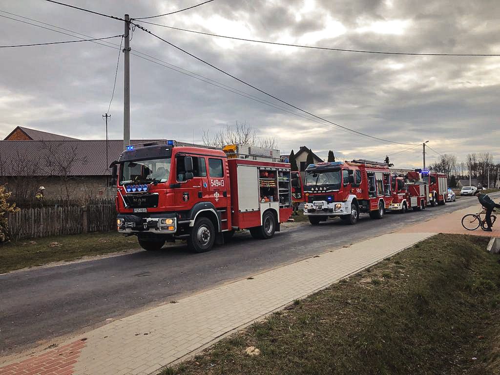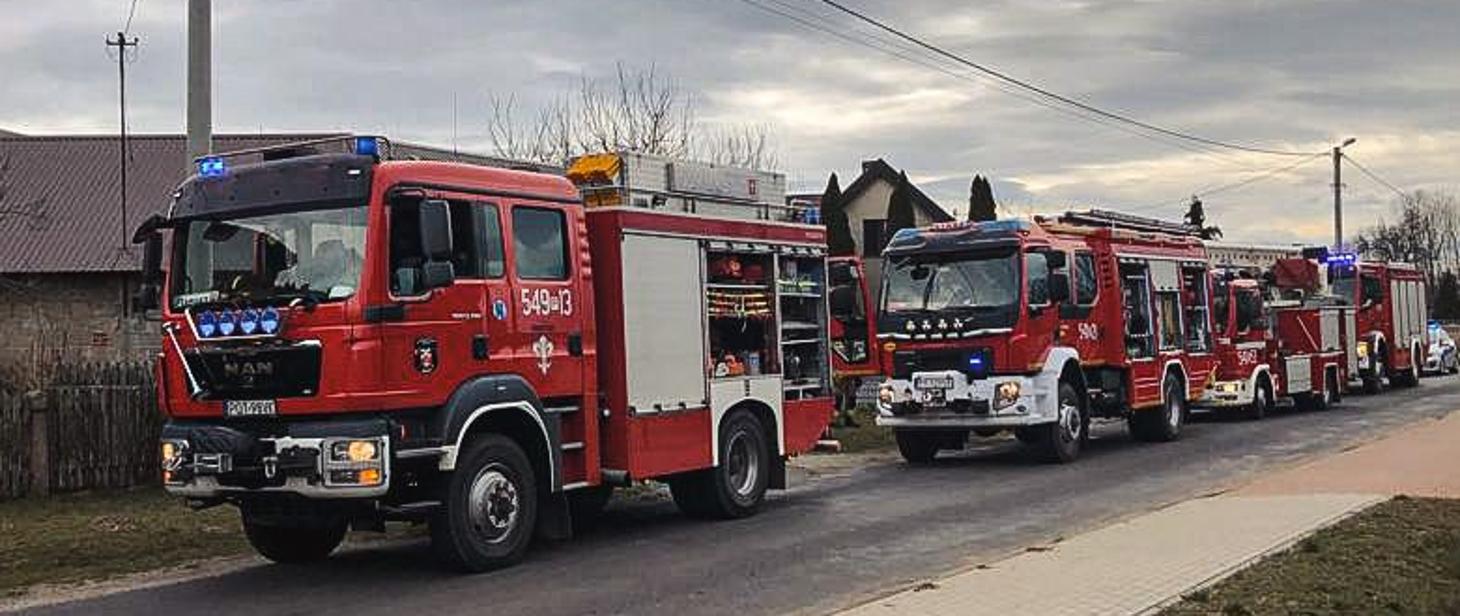 Przybyłe na miejsc zdarzenia pierwsze zastępy staży pożarnej zastały pożar pomieszczenia w budynku jednorodzinnym w którym panowało bardzo duże zadymienie.