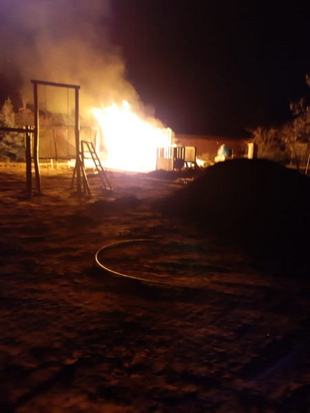 Po przybyciu zadysponowanych zastępów na miejsce zdarzenia ustalono, że pali się drewniany domek dla zabaw oraz wiata z drewnem. Brak osób poszkodowanych. Działania jednostek ochrony przeciwpożarowej polegały na zabezpieczeniu miejsca zdarzenia. Ratownicy zabezpieczeni w środki ochrony dróg oddechowych podali jeden prąd gaśniczy w natarciu na palący się domek dla dzieci oraz dwa prądy z czego jeden w obronie na palącą się wiatę z drewnem. Po ugaszeniu palącego się domku i wiaty miejsce pożaru zostału sprawdzone kamerą termowizyjną – brak miejsc z podwyższoną temperaturą. Udział 4 zastępy 20 ratowników.