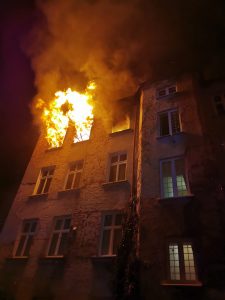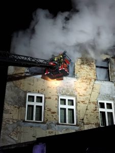 W dniu 22.12.2022r o godz. 1:55 dyżurny SKKM w Kaliszu odebrał zgłoszenie o pożarze w kamienicy na ul. Harcerskiej 12.