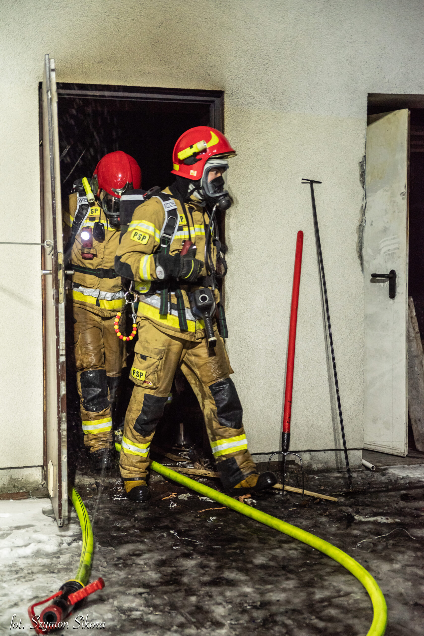 Po zabezpieczeniu terenu działań strażacy wyposażeni w aparaty ochrony dróg oddechowych oraz kamerę termowizyjną wprowadzili do wnętrza pomieszczenia prąd gaśniczy wody, prowadząc działania w natarciu na źródło pożaru. Po stłumieniu ognia celem usunięcia gazów pożarowych rozpoczęto nadciśnieniową wentylację za pomocą wentylatora oddymiającego. W momencie poprawy warunków pożarowych w kotłowni przystąpiono do usuwania materiałów palnych na zewnątrz obiektu. Do czasu zakończenia akcji gaśniczej wyznaczona rota wyposażona w urządzenia pomiarowe stale monitorowała pomieszczenia przylegające do i części objętej działaniami. Z uwagi na stwierdzone występowanie tlenku węgla w podwyższonych wartościach do momentu likwidacji zagrożenia ewakuowano 29 użytkowników kompleksu hotelowo-restauracyjnego. Po intensywnym wietrzeniu wyznaczonych pomieszczeń osiągnięto zerowe wartości gazów niebezpiecznych w atmosferze, wydając zgodę na powrót osób korzystających z obiektu. Dzięki przytomnej reakcji pracowników oraz szybkiej i sprawnej akcji gaśniczej udało się zminimalizować straty w mieniu. Działania straży pożarnej trwały łącznie 01 godzinę i 39 minut.