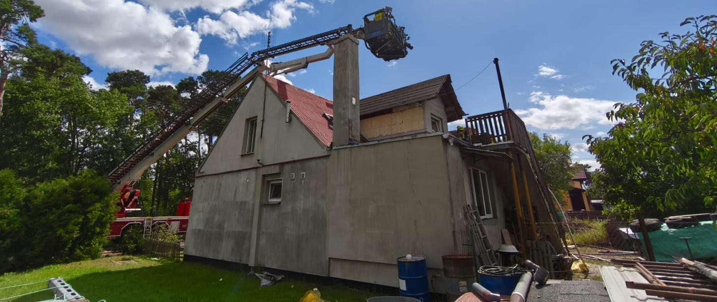 Działania strażaków polegały m.in. na zabezpieczeniu miejsca zdarzenia i podaniu środków gaśniczych na palący się budynek (głównie poddasze użytkowe oraz część dachu).