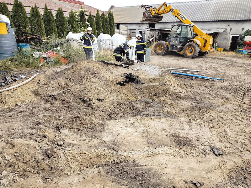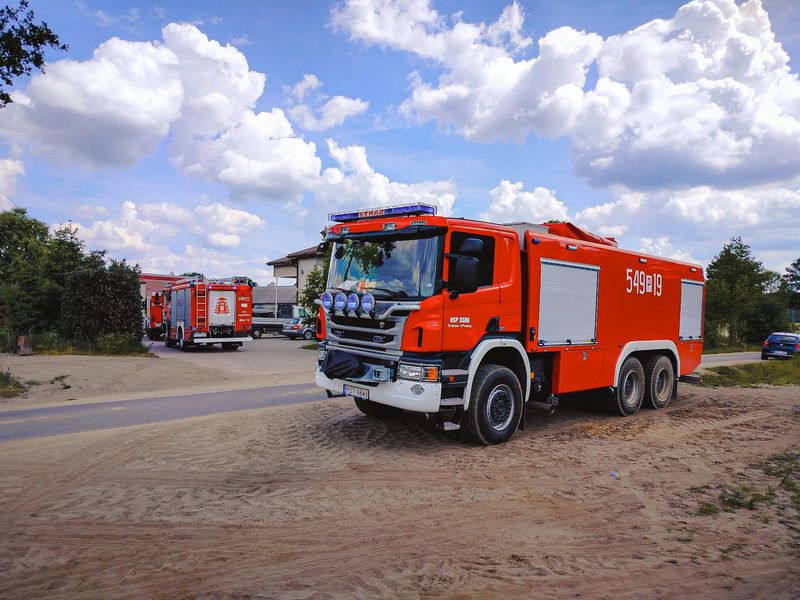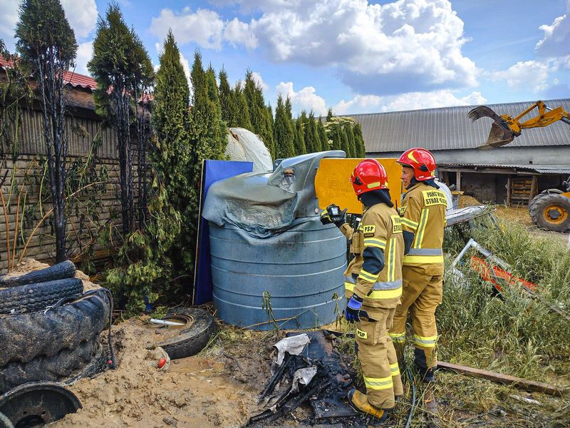Na miejscu zdarzenia jednostki ochrony przeciwpożarowej zastały pozostałości przyczepy kempingowej przysypaną piaskiem przez właściciela posesji, co przyczyniło się do przytłumienia ognia. Pożarem zostały objęte rosnące w około krzewy ozdobne, które stanowiły bardzo duże zagrożenie dla znajdującego się w pobliżu zbiornika na olej napędowy oraz budynek gospodarczy ze zwierzętami. Działania strażaków polegały na zabezpieczeniu miejsca zdarzenia. Podano jeden prąd wody na palące się krzewy oraz nadpalony zbiornik celu schłodzenia. Następnie sprawdzono kamerą termowizyjną elementy które były objęte pożarem, aby wykluczyć zagrożenie.