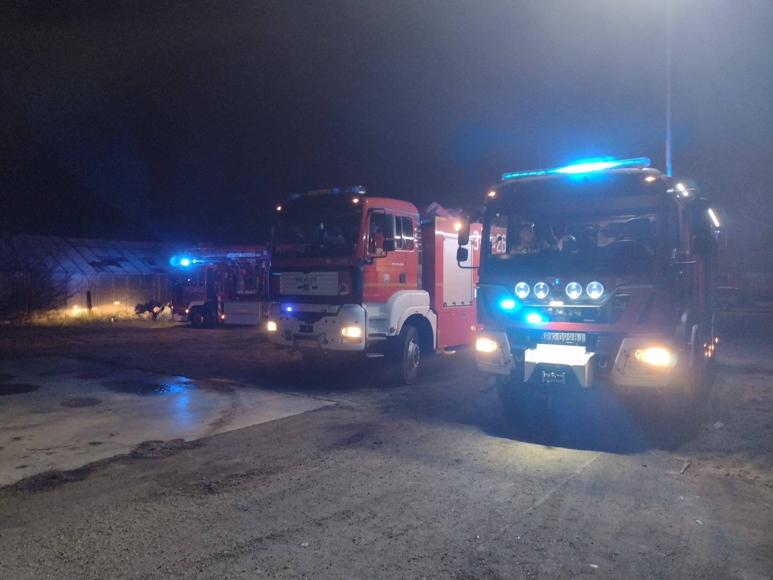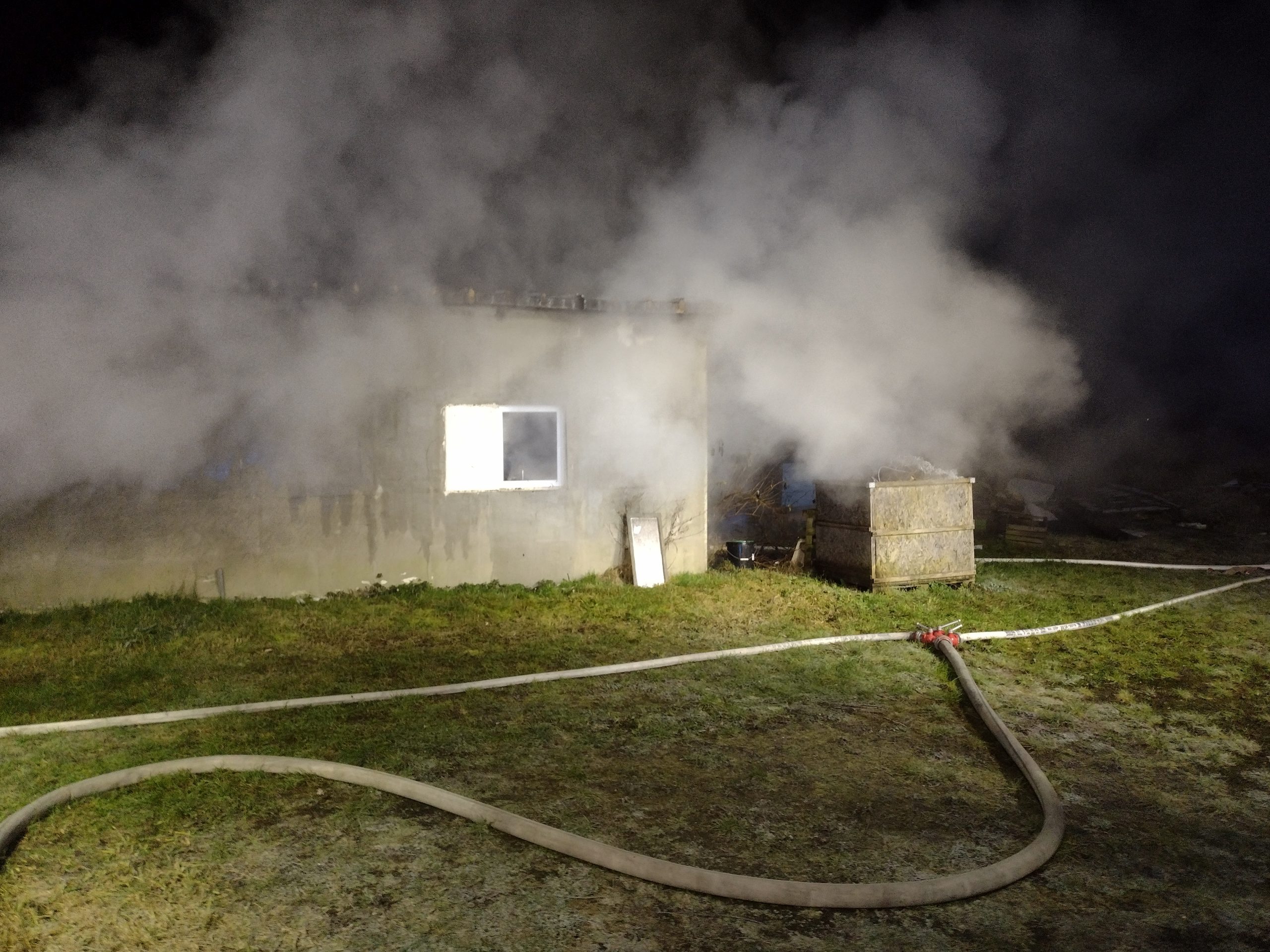 W obrębie pożaru panowało zadymienie. Będący na miejscu właściciel odłączył napięcie od budynku przed przyjazdem PSP i poinformował o braku osób, które mogłyby znajdować się w obiekcie.