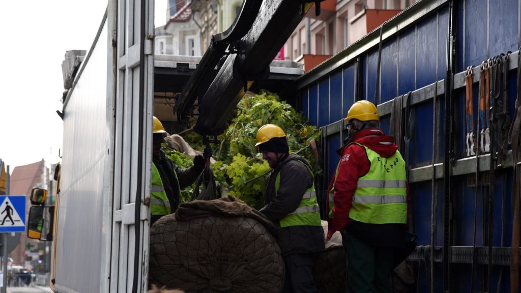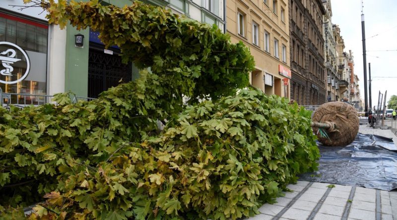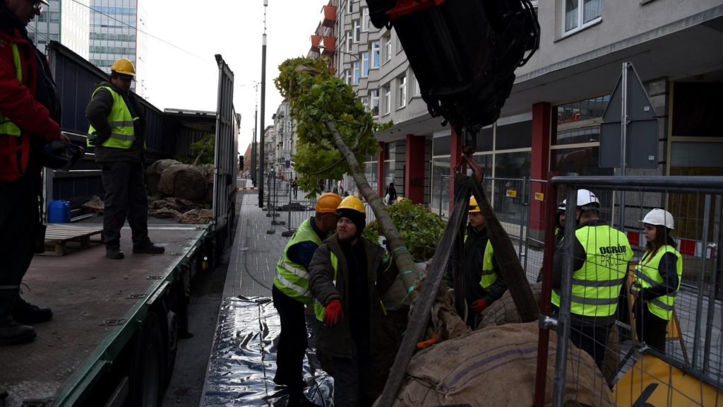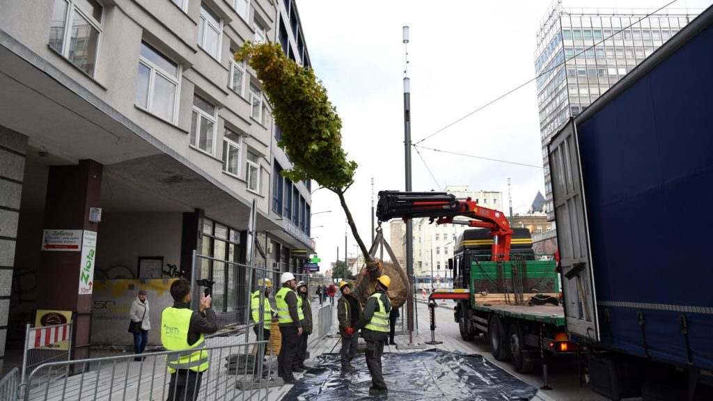 Zgodnie z harmonogramem 2 października na ul. Św. Marcin przywieziono drzewa by posadzić je po częściowo wykończonej już części ulicy, wzdłuż kamienic.