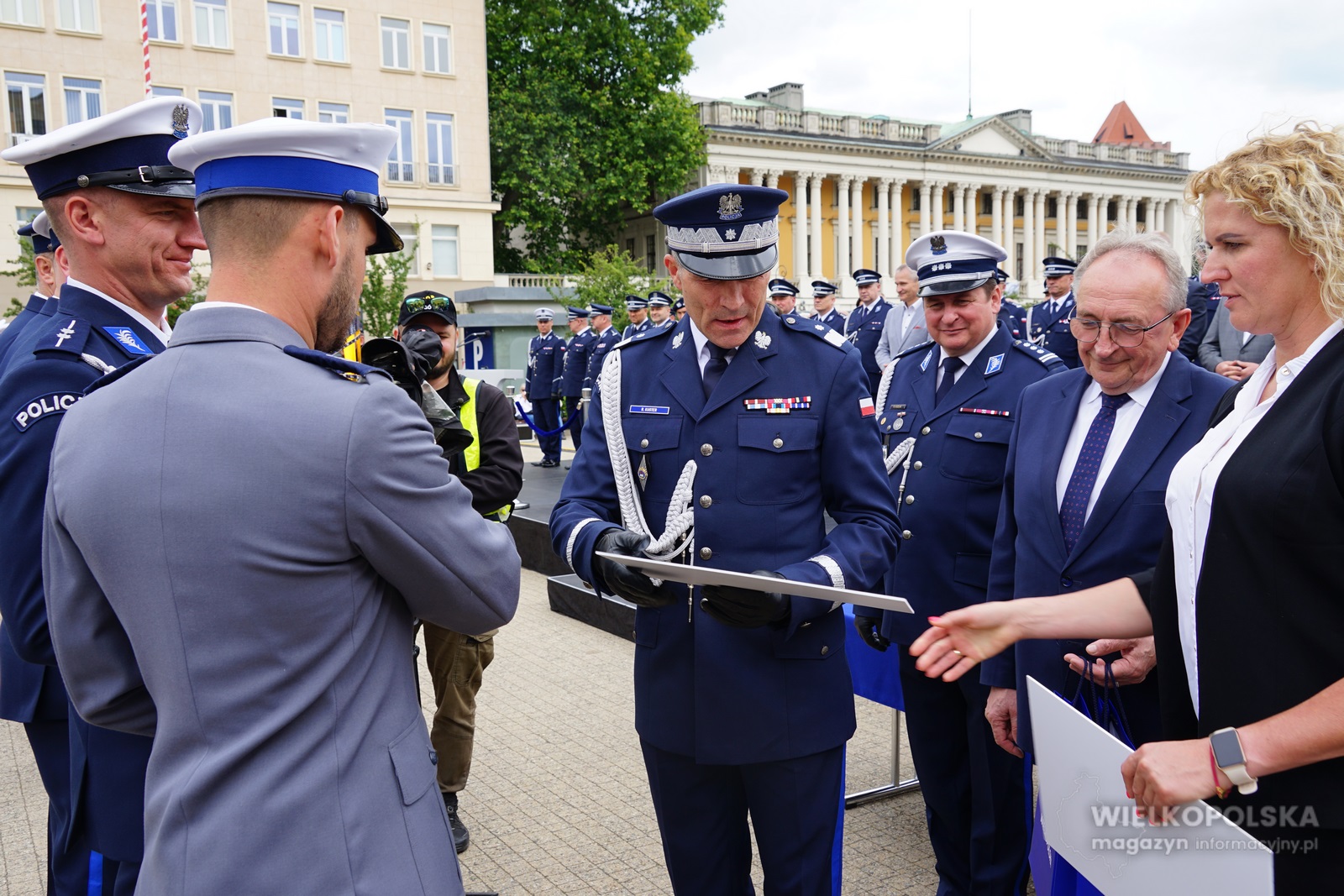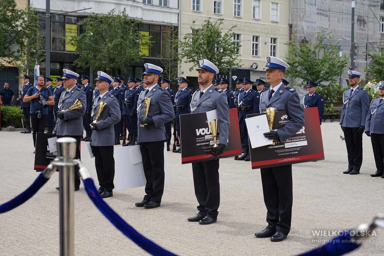 Uroczyste zakończenie konkursu odbyło się w piątek 14 czerwca na Placu Wolności w Poznaniu. Punktualnie o godzinie 12.00 dowódca uroczystości złożył meldunek Zastępcy Komendanta Głównego Policji nadinsp. Romanowi Kusterowi o rozpoczęciu uroczystego apelu z okazji zakończenia XXXIV edycji ogólnopolskiego konkursu „Policjant Ruchu Drogowego”. Po podniesieniu Flagi Państwowej i odegraniu hymnu Komendant Wojewódzki Policji w Poznaniu insp. Tomasz Olczyk przywitał znamienitych gości przybyłych na dzisiejszą uroczystość.