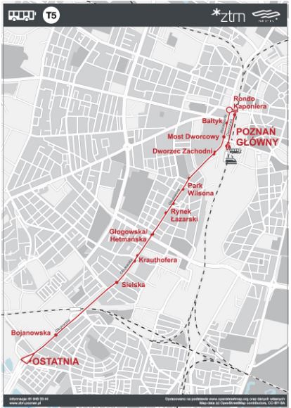 Dodatkowo, aby ułatwić przemieszczanie się w tym rejonie, w dni robocze na trasie Poznań Główny-Ostatnia uruchamiana będzie linia autobusowa za tramwaj T5. Na tzw. dolnej trasie PST – z Piątkowa do Dworca Zachodniego – nadal będzie kursował tramwaj linii nr 19 (w dni robocze, w godzinach szczytu).