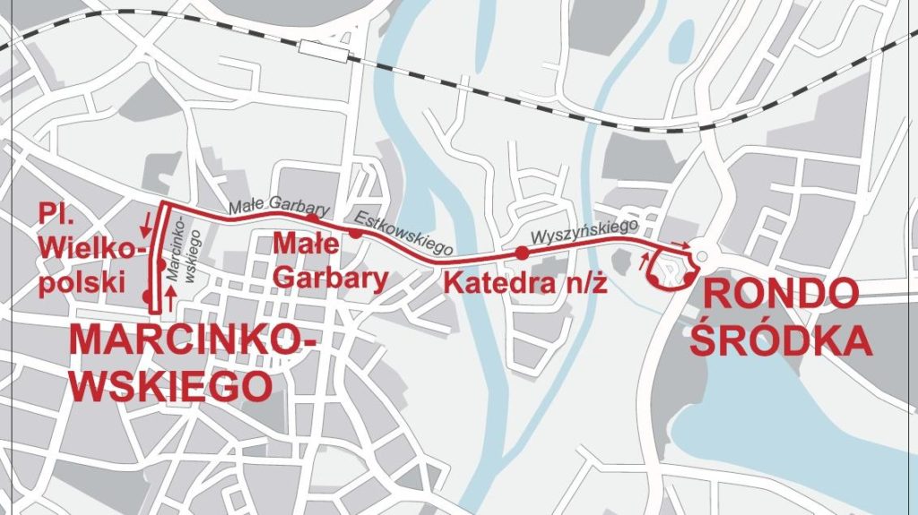 Aby ułatwić podróżowanie od ronda Śródka w stronę centrum, uruchomiona zostanie linia autobusowa „za tramwaj” T8. Będzie ona dojeżdżać do Al. Marcinkowskiego i zawracać na wysokości placu Wolności.