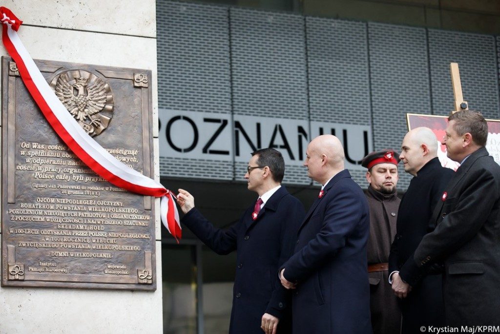 Premier Mateusz Morawiecki wziął dziś udział w uroczystościach z okazji 100. rocznicy wybuchu zwycięskiego Powstania Wielkopolskiego. Prezes Rady Ministrów złożył wspólnie z wojewodą wielkopolskim Zbigniewem Hoffmannem kwiaty na mogile generała Stanisława Taczaka oraz uczestniczył w uroczystości odsłonięcia Tablicy Wdzięczności.