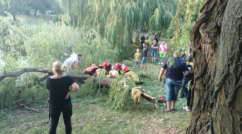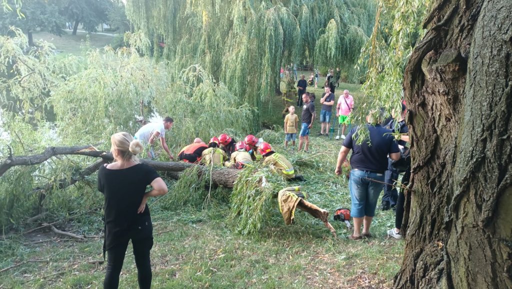W dniu 02.08.2022r. o godzinnie 19:34 do Stanowiska Kierowania Komendanta Miejskiego w Kaliszu wpłynęło zgłoszenie o złamanym konarze drzewa w parku przyjaźni, który spadł na przechodzące chodnikiem trzy nastolatki. Po przyjeździe na miejsce zdarzenia pierwszych zastępów stwierdzono, że w wyniku zdarzenia poszkodowane zostały dwie osoby i wymagają one udzielenia pomocy medycznej. Działania straży polegały na zabezpieczeniu miejsca zdarzenia. Następnie strażacy wydostali osoby poszkodowane spod konaru drzewa i pomogli zespołom medycznym w zaopatrzeniu poszkodowanych oraz w przetransportowaniu ich do karetek. Jedna z osób poszkodowanych uskarżała się na ból kręgosłupa oraz cierpiała na chwilowe zaniki świadomości natomiast druga osoba miała otarcia ciała oraz rany głowy. Po zakończeniu działań prowadzonych przez strażaków dalsze czynności na miejscu zdarzenia wykonywała Policja. W działaniach uczestniczyły: 2 zastępy z JRG1 Kalisz, OSP Dobrzec, Pogotowie oraz Policja.