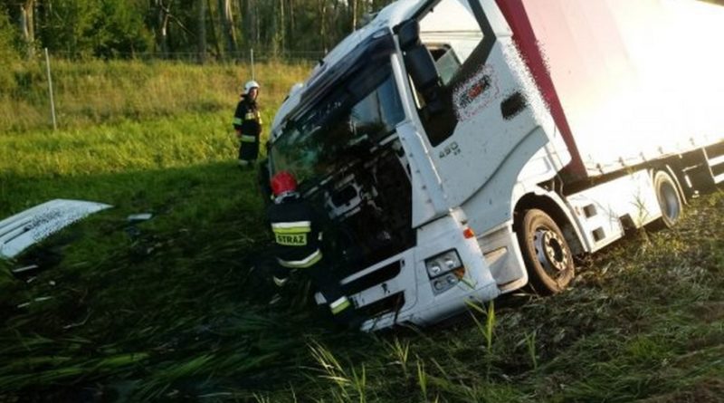 Po dojeździe służb ratowniczych zastano samochód ciężarowy z naczepą przechylony na prawy bok, w przydrożnym rowie. Kierowca wraz z pasażerem opuścili pojazd o własnych siłach nie doznając żadnych obrażeń. Przeprowadzone rozpoznanie nie wykazało żadnych zagrożeń i miejsce zdarzenia zostało przekazane służbą autostradowym. Postawieniem samochodu na koła zajęła się firma autopomocy drogowej. Naczepa załadowana była częściami samochodowymi.