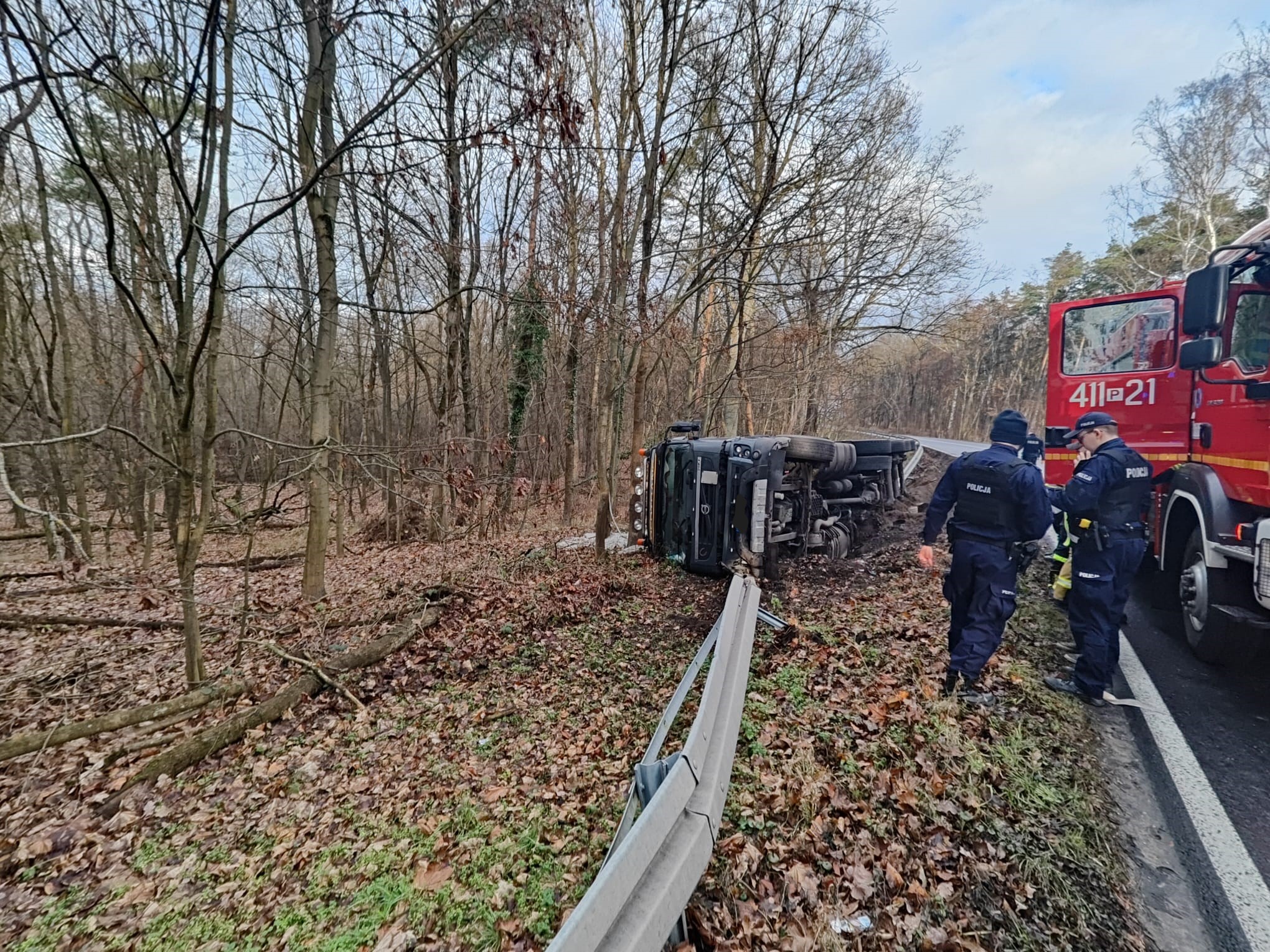 SAMOCHÓD CIĘŻAROWY WYPADŁ Z DROGI