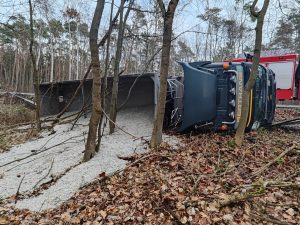 W dniu 29 grudnia 2022 r. Stanowisko Kierowania Komendanta Powiatowego Państwowej Straży Pożarnej w Czarnkowie otrzymało zgłoszenie, w ramach dysponowania z Centrum Powiadamiania Ratunkowego o samochodzie ciężarowym przewożącym kruszywo który wypadł z drogi na trasie Lubasz – Dębe.