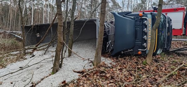 SAMOCHÓD CIĘŻAROWY WYPADŁ Z DROGI