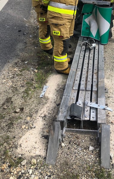 Działania straży polegały na zabezpieczeniu miejsca zdarzenia oraz sorpcji rozlanych płynów eksploatacyjnych. Uszkodzoną barierę energochłonną oznakowano.