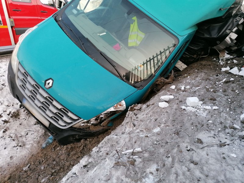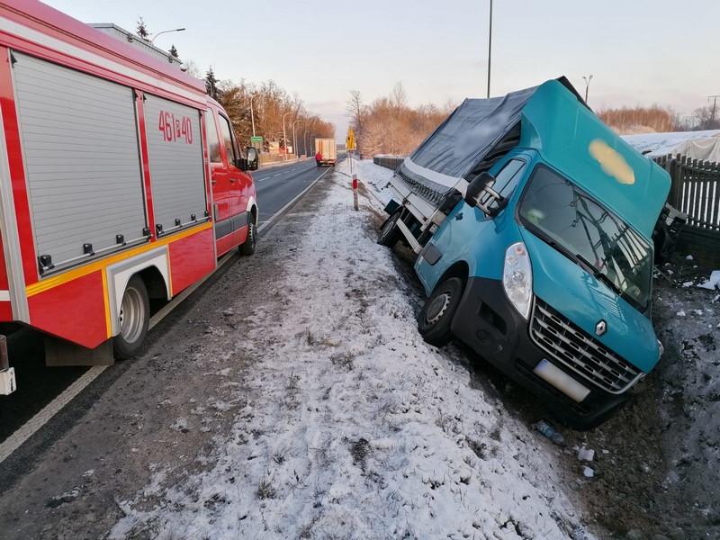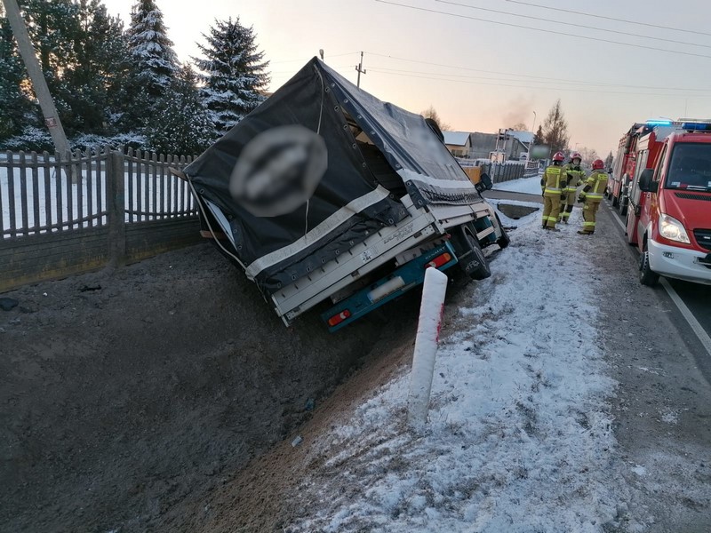 Po przybyciu na miejsce zdarzenia stwierdzono, że samochód dostawczy wypadł z drogi i znajdował się w przydrożnym rowie. Kierowca pojazdu wymagał pomocy medycznej.