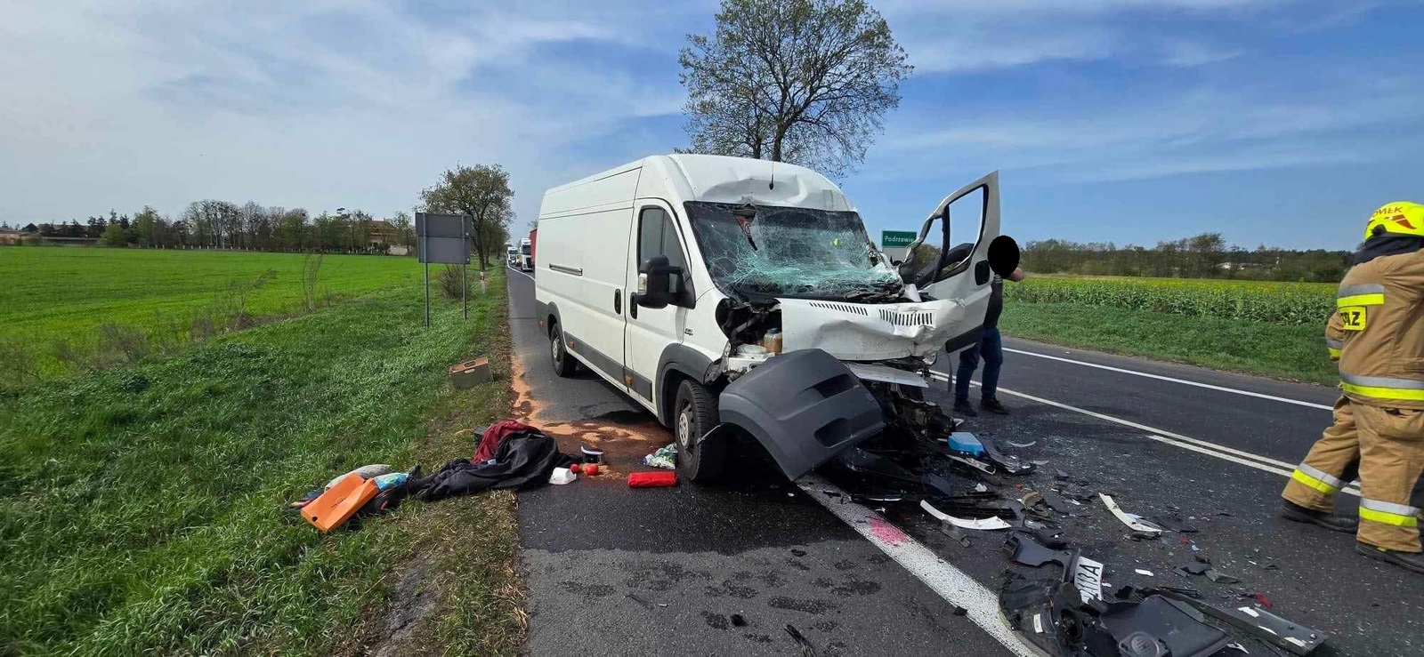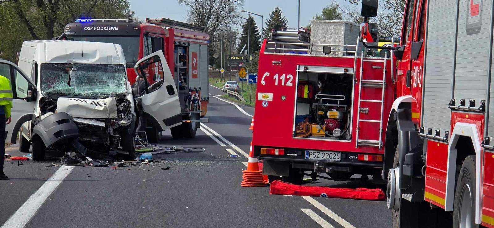 W czwartek, 17 kwietnia 2025 roku o godz. 13.20 do dyżurnego Stanowiska Kierowania Państwowej Straży Pożarnej w Szamotułach wpłynęło zgłoszenie z Centrum Powiadamiania Ratunkowego, które informowało o wypadku drogowym z udziałem samochodu osobowego i ciężarowego oraz jednej osobie poszkodowanej uwięzionej w pojeździe na drodze krajowej nr 92 w miejscowości Podrzewie gm. Duszniki.