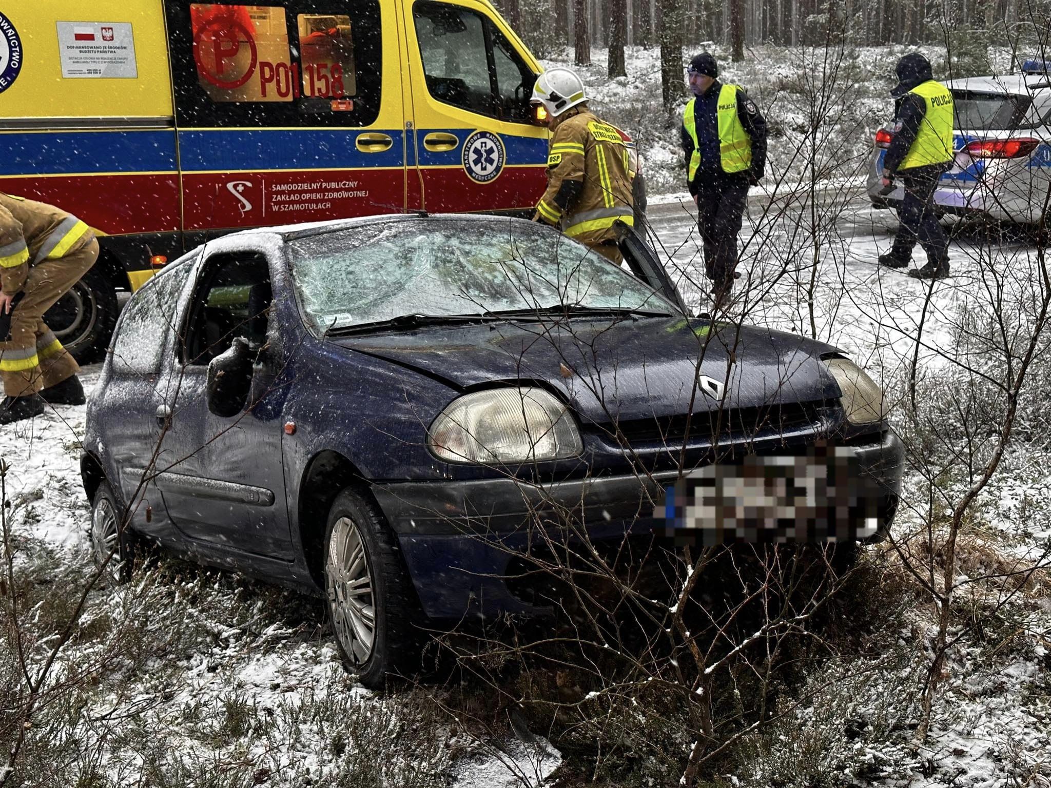 W piątek, 9 lutego o godz. 10.10 do dyżurnego Stanowiska Kierowania Państwowej Straży Pożarnej w Szamotułach wpłynęło zgłoszenie z Centrum Powiadamiania Ratunkowego, które informowało o dachowaniu samochodu osobowego oraz dwóch osobach poszkodowanych na trasie Rzecin – Jasionna.