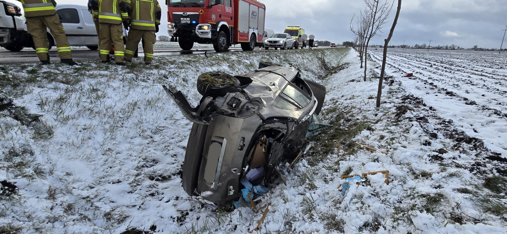 W sobotę, 11 stycznia 2025 roku o godz. 13.33 do dyżurnego Stanowiska Kierowania Państwowej Straży Pożarnej w Szamotułach wpłynęło zgłoszenie z Centrum Powiadamiania Ratunkowego, które informowało o samochodzie osobowym znajdującym się w rowie oraz jednej osobie poszkodowanej uwięzionej wewnątrz pojazdu na trasie Szamotuły – Obrzycko w miejscowości Gaj Mały.