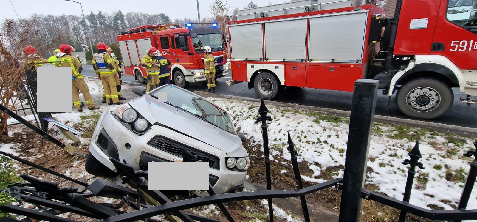 Samochód w rowie, uszkodzony płot