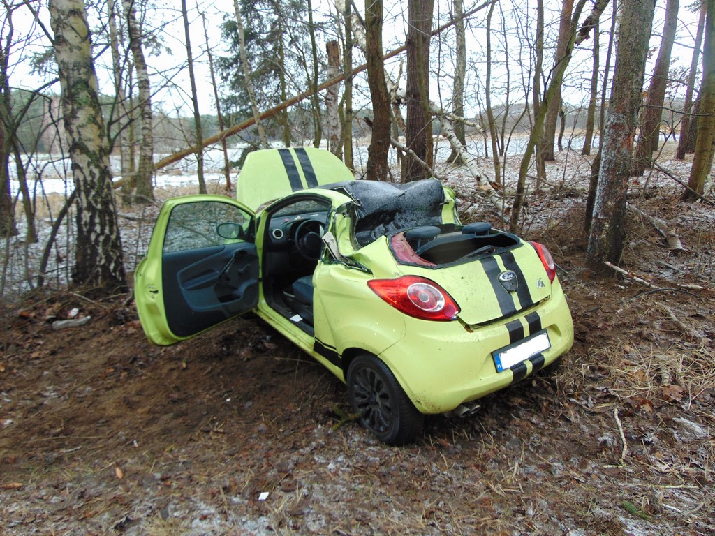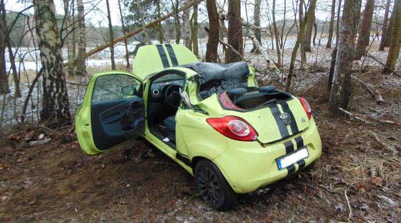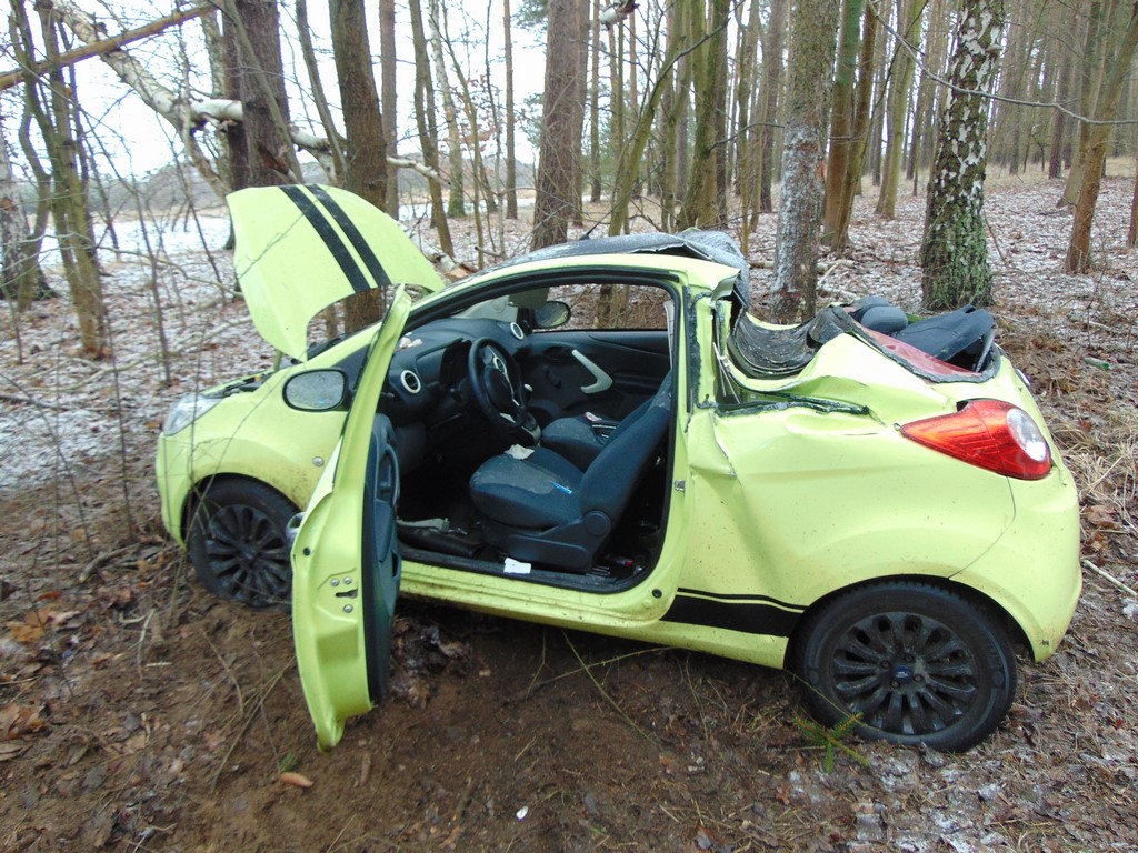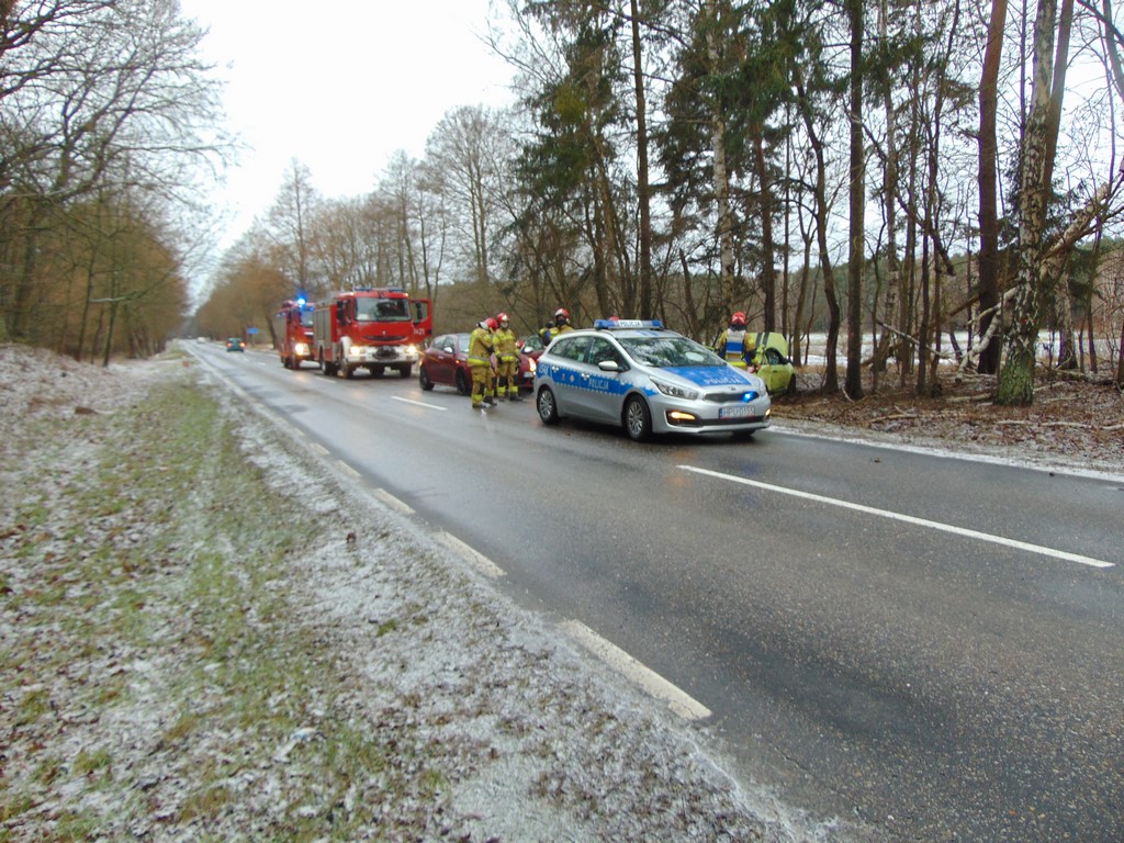 W czwartek 4 lutego 2021 r. na śliskiej jezdni samochód wpadł w poślizg. Następnie wypadł z drogi i uderzył w drzewo. W zdarzeniu ranna została jedna osoba, która po udzieleniu pomocy przez ZRM nie wymagała transportu do szpitala. W działaniach brały udział dwa zastępcy JRG Międzychód, jeden zastęp OSP Sieraków.